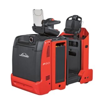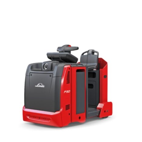 Linde Material Handling's P30 C and P50 C electric tow tractors allow for efficient and fatigue-free work while transporting goods with load trains. The driver can also benefit from a new platform configuration: the control panel, adjustable backrest and driver standing platform form a u-shaped unit that is completely cushioned, improving comfort while driving. In addition, the electric 2-handled steering unit makes it easier to maneuver when space is limited. The powerful high-torque drive motor ensures high-performance handling. The P30 - P50 C electric tow tractors can pull a maximum load capacity of three (P30) and five (P50) tons.