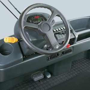 The spacious operator’s cabin has automotive pedal layout, direction lever, steering wheel and controls, together with a fully adjustable suspension seat provides a comfortable and fatigue-free working environment. Cab suspension dampers and a spring damped suspension system front and rear ensures superb levels of driving comfort, all with low-step access.